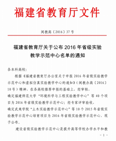 福建省理化分析实验教学示范中心依托伟德bevictor中文版,在福建省教育厅的领导与支持指导下开展建设工作。重点实验室于2016年11月获福建省教育厅批准筹建。