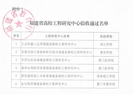 1、福建省产品质量和食品安全检测试剂与仪器工程技术研究中心