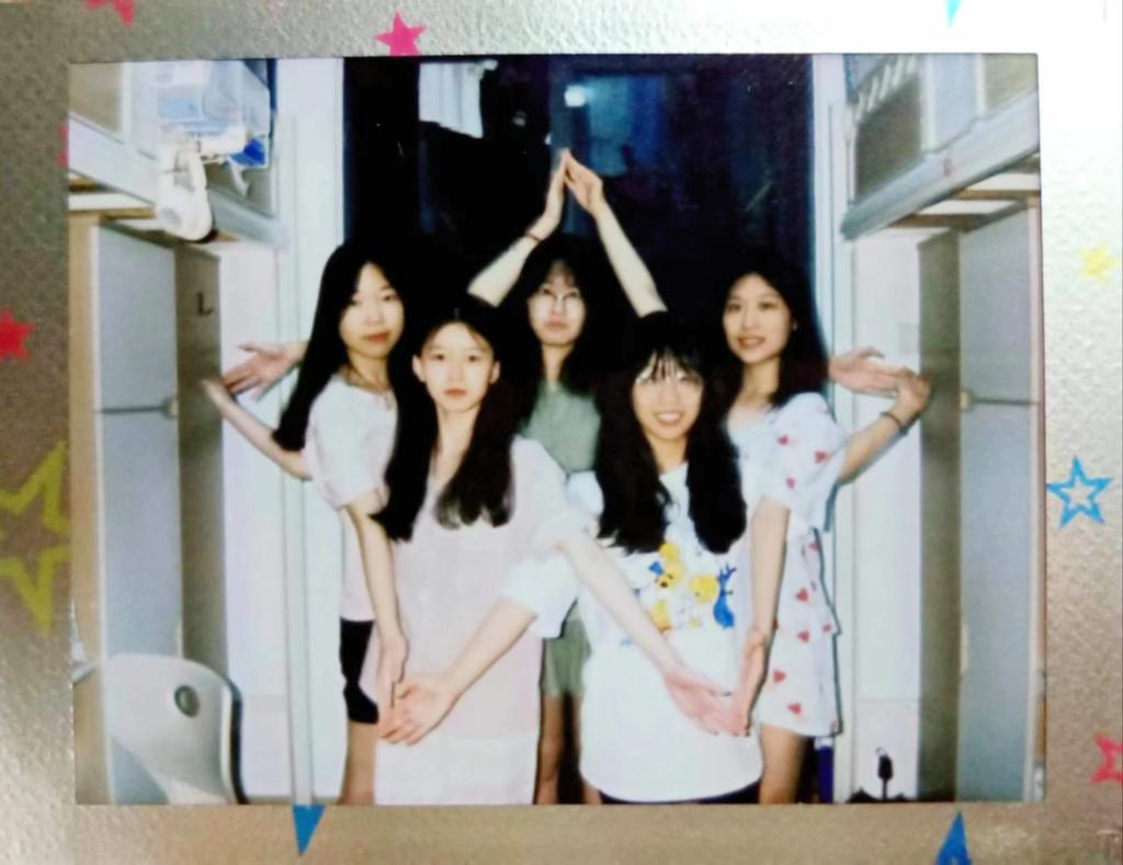 寓意:性格各意,但都散发着独特的青春色彩,共同组成了这个缤纷多彩的宿舍大家庭。就如同五角星的组成一样,缺一不可。我们朝夕相处,携手共进,心也相知,日子细水长流,我们宿舍的故事未完待……