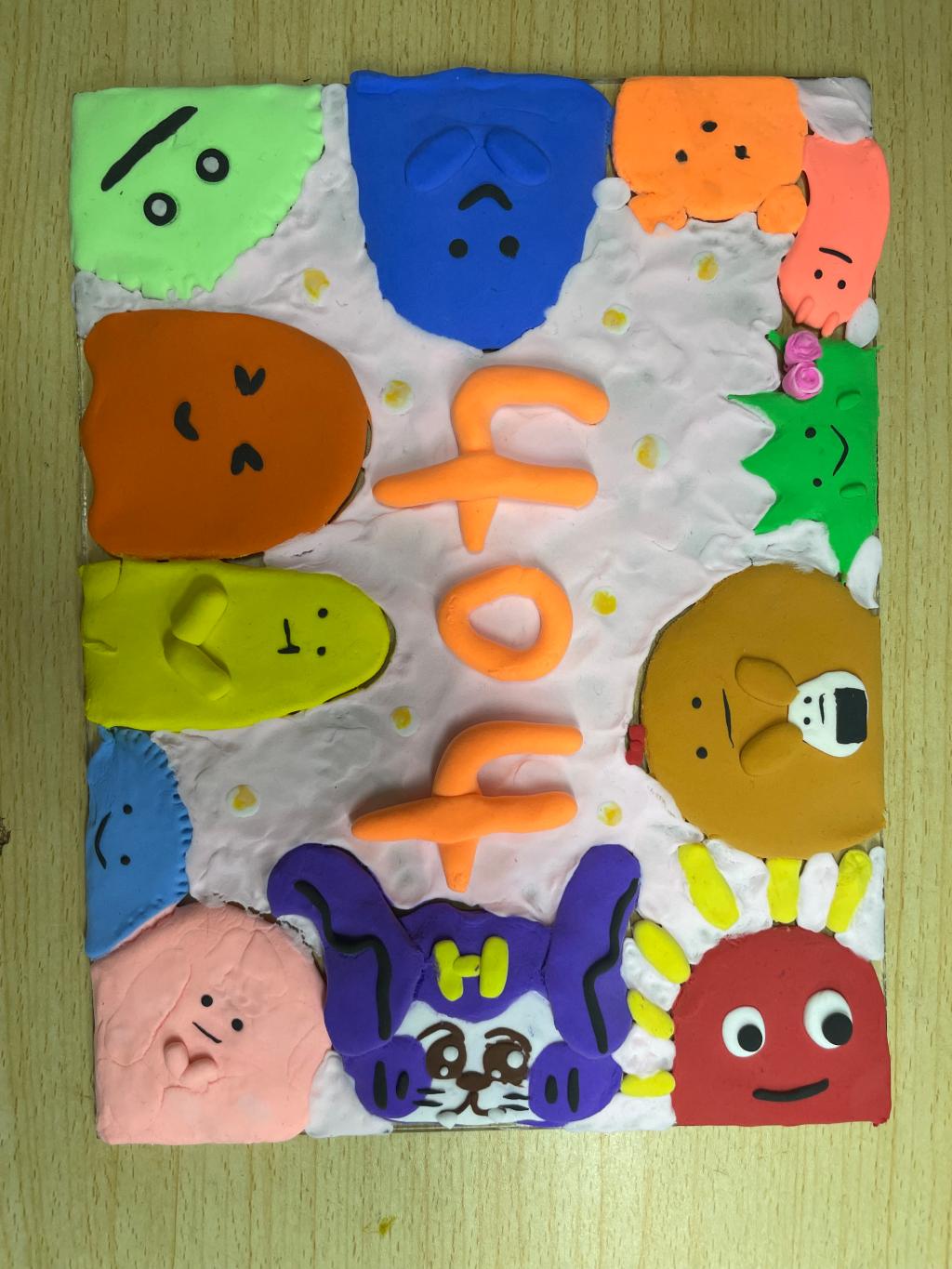 寓意:整个门牌以粉色系为主色调,彰显着我们充满活力的青春。其中最显眼的个人头像,代表了我们每个人不同的风格与个性。头像右侧的“睡觉”,“外出”,“上课”,“干饭”则表示了我们在校园里的日常生活。而五朵颜色不同,大小不同,甚至款式不同的花朵,更代表着我们的性格不同,但又在相处的过程之中绽放属于自己的绚烂。不仅如此,门牌上方机灵搞怪的“410”以及门牌下方悬挂着以三原色编织的“410”,更蕴含着我们对于宿舍的爱、对于手工的浓烈兴趣、最重要的是我们之间的爱与温暖。