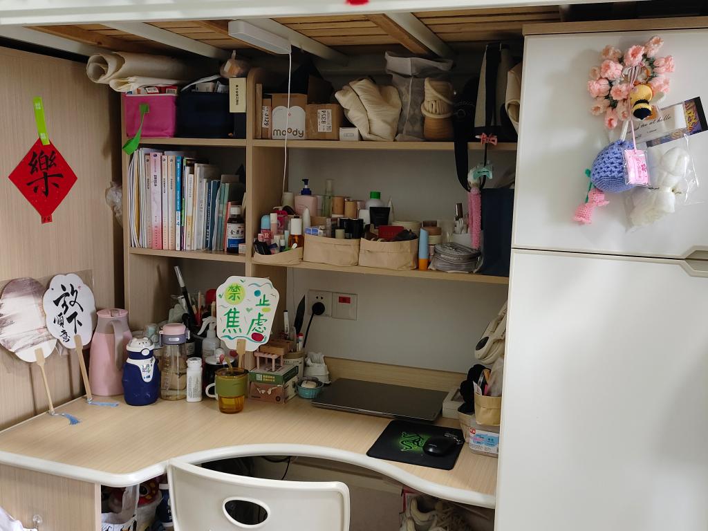 寓意:我们打造一个简洁舒适的宿舍小窝,在规划整体的同时追求个性,为我们的大学宿舍生活增添一份美好和惬意。