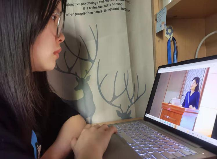 曾伊婧同学认真观看思政大课