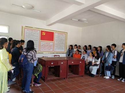 当天,风和日丽,党总支全体师生学习的第一站是军营村的活动中心,这里曾是1986年习总书记深入军营村开展乡村发展座谈会的地方。全体师生在此庄重地朗读了入党誓词,重温入党时的那份激情,深刻体会了习总书记关于“不忘初心”的嘱咐。