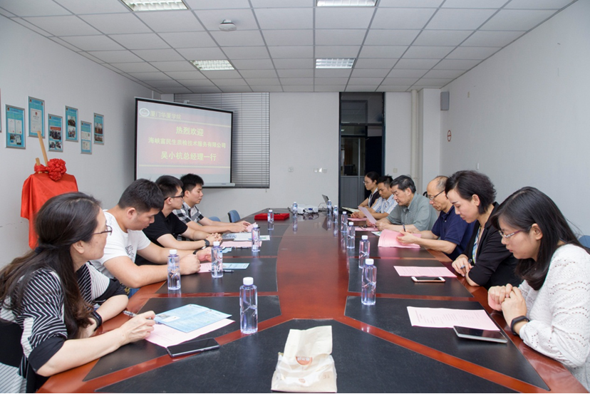 集团董事长杨芃原等校领导与吴总经理一行就校企双方合作事宜深入交流。经双方沟通交流,达成一致意见后,公司与海峡富民生质检技术服务有限公司签订合作协议。今后,双方就应用型人才培养、技术开发与服务、项目申报等领域开展深入的交流合作。