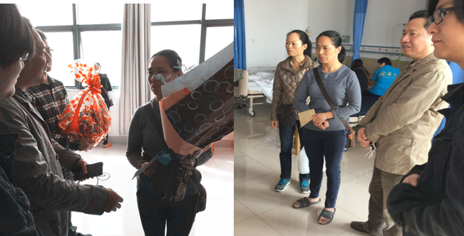 在医院里,林荣生书记将慰问信和慰问金送到家属手上,同时转达了母校对陈萃萃员工的关心,亲切询问了目前的病情,嘱咐家属好好照顾孩子,积极配合治疗,并期待陈萃萃员工早日康复,完成学业。