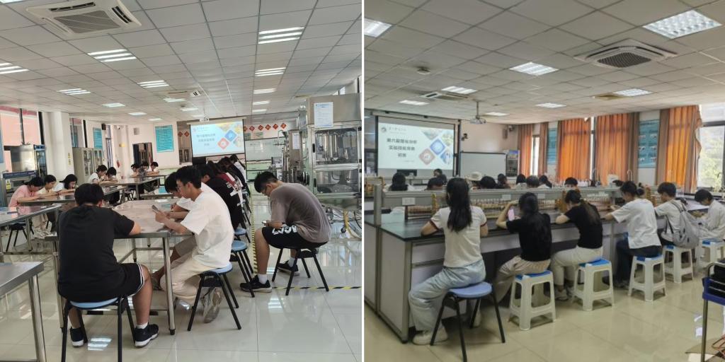 本次理化分析实验技能竞赛分为初赛和决赛两轮进行。初赛为理论考试,采用线上考试形式,内容涉及实验室安全知识、基础化学实验知识、实验操作规范、实验环保与健康等。11月5日下午,来自环境科学与工程、制药工程、食品质量专业的118名员工参加了初赛,经过角逐前60名员工进入决赛。