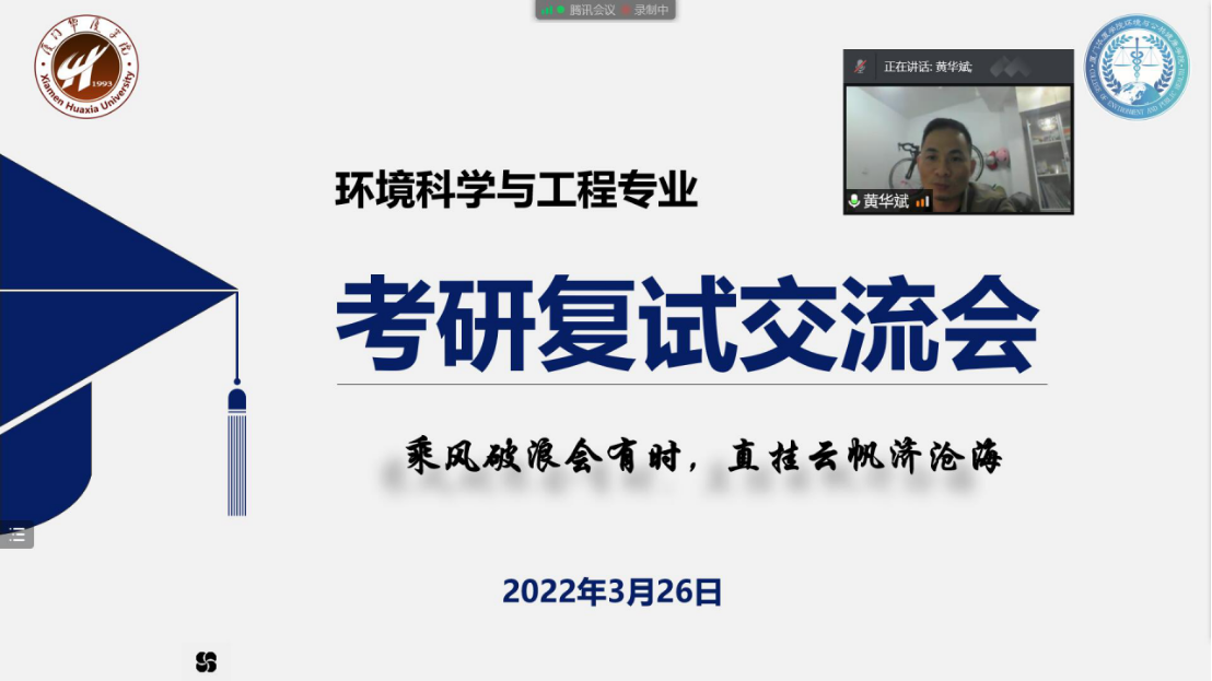 会议由2018级环境科学与工程专业1班班主任林承奇老师主持,邀请了bevictor伟德经理黄华斌教授、环境科学系系主任王燕云副教授、2020届环境科学与工程专业毕业生俞妙彤(南京师范大学在读研究生)、2021届毕业生吴高颖(福建农林大学在读研究生)与2018级环境科学与工程专业1班陈洁等准备参加复试的同学进行经验分享及交流。