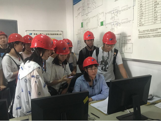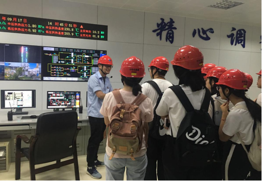 首先生产运维部主任带领员工参观公司的主要生产设备,介绍集美后溪台商工业园区的发展和燃气分布式能源站特点,通过他的精彩讲解,使同学们对燃气-蒸汽联合循环发电机组生产流程有了一定的了解,知晓该装置的综合供能效率高,具有节能、环保、低能耗、低污染的特点,是目前先进、受推广的设备与技术。