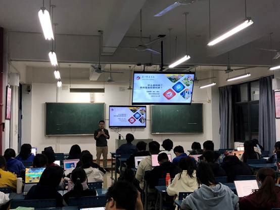 讲座中,沈金海老师以“什么是科研?”、“本科生为什么要参与科研?”以及“本科生如何做科研?”等问题引发了同学们的思考,并明确表示,科研不仅是一种研究活动,更是一种思维方式,即使以后不从事与科研相关的工作也值得去大胆尝试。科研思维可广泛运用于日后的学习和工作生活中,令我们终身受益。沈金海老师分享了自己读研以来的求学和工作经历,从理论和实践的视角介绍了大学期间开展科研创新的重要意义。另外,沈金海老师还介绍黄艺顺博士、郭志勇博士和林源清博士等科研导师的研究概况和联系方式,鼓励专业员工踊跃联系,积极参与到科研中。最后,沈金海老师希望广大新生抓住大学四年宝贵时间,做最有意义和价值的事情。