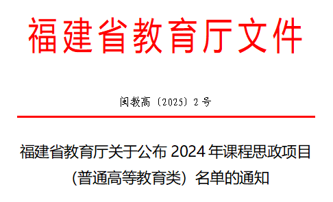 近日,福建省教育厅下发了《关于公布2024年课程思政项目(普通高等教育类)名单的通知》(闽教高[2025]2号),公司环境科学与工程专业的《环境监测》课程获批2024 年省级课程思政项目(普通高等教育类)立项。