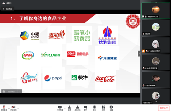 受疫情影响,本次专业认知实习主要通过邀请企业行业专家入校开展讲座及员工线上调研方式展开。本次课程邀请了集美大学食品与生物工程公司杨燊副教授、厦门大学附属中山医院营养科林立群主治医师、厦门中集信检测技术有限公司技术负责人江锋主任、厦门海关技术中心方恩华高级工程师、SGS厦门分公司的人事经理和检测技术工程师开展专业认知讲座。由于疫情防控,对于不能入校的专家则采取了线上开展讲座的方式。通过听取一系列的讲座,同学们了解了食品行业发展现状和趋势、食品专业就业方向、相关岗位工作内容和知识技能要求,也理解了大学各门课程学习的意义。