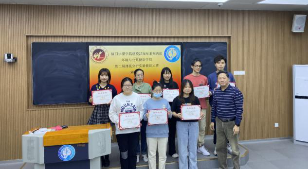 图六:张晓萍老师为曲奇大赛一等奖的队伍代表进行颁奖