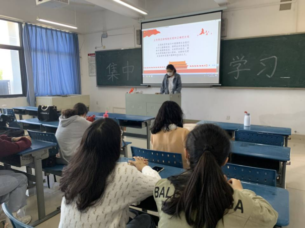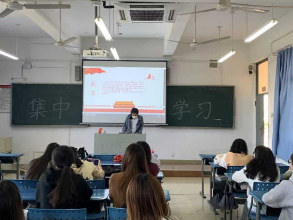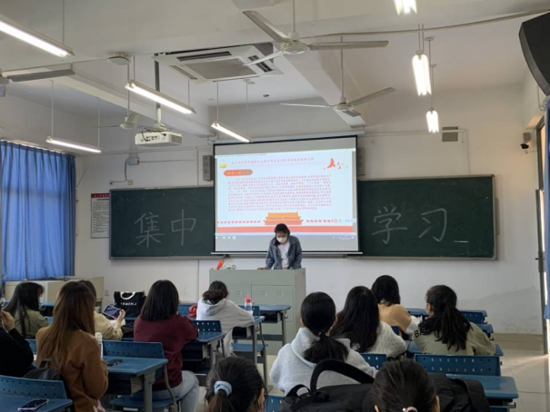 集中学习由李艺婷同学给大家宣讲此次学习有关十九届六中全会精神、省第十一次党代会、省委十一届一次全会精神及七一讲话精神的学习内容。
