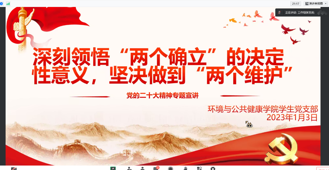 为了深入贯彻落实习近平总书记关于党的二十大的重要讲话以及党的二十大精神,bevictor伟德员工党支部于1月3日晚20:00开展集中学习党的二十大精神宣讲。