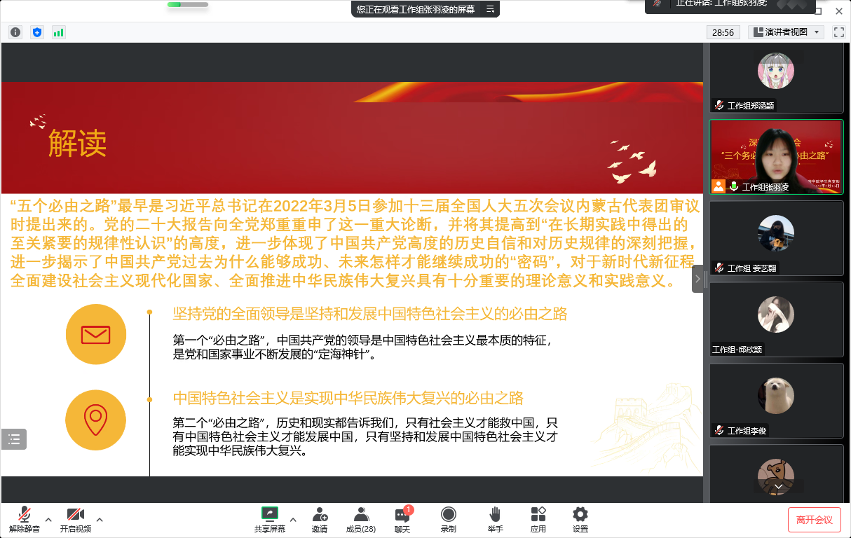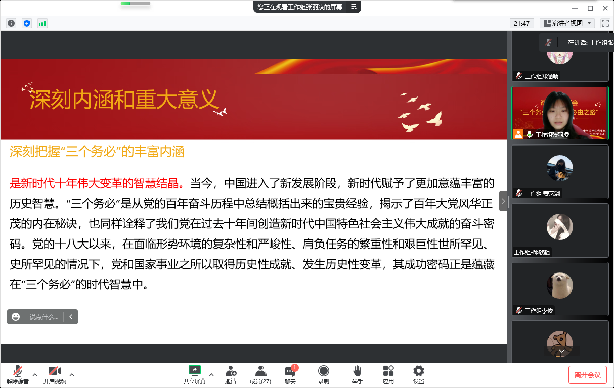 为深入学习宣传贯彻党的二十大精神,引领广大青年争做有理想、敢担当、能吃苦、肯奋斗的新时代好青年,bevictor伟德员工党支部2023年2月15日下午3:30线上开展集中学习“三个务必”和“五个必由之路”党的二十大精神专题宣讲。本次主讲人为公司党团先锋队工作组张羽凌。