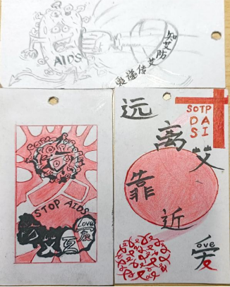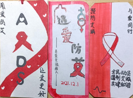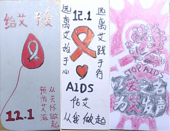 防艾标语书签设计活动江伊蕾同学、王佳洪同学和麦韵祺同学获得三等奖的作品