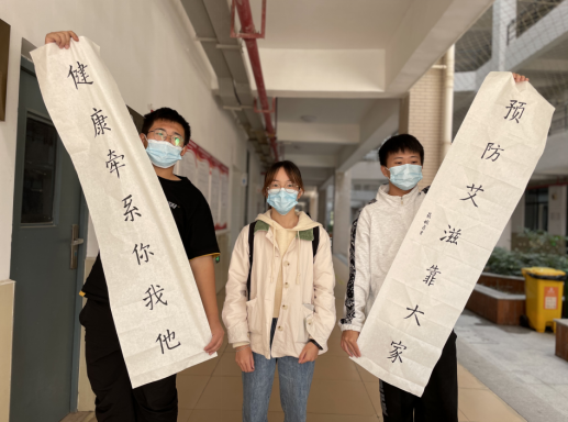 通过现场毛笔字书法形式来展现同学们的才华,亦是为了让更多同学掌握预防艾滋病的知识与技能、培养文明健康的生活方式、营造良好的艾滋病防治校园环境。