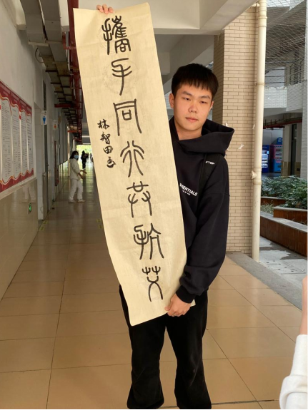 现场毛笔书法比赛齐思瑾同学获得三等奖