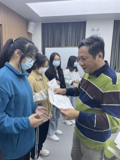 林荣生老师为“手绘口罩,助力抗疫”口罩创意设计大赛获一、二、三等奖者颁奖