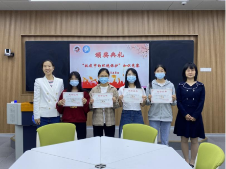 林若川老师和张小玲老师为“抗疫中的环境保护”知识竞赛获优秀奖者颁奖