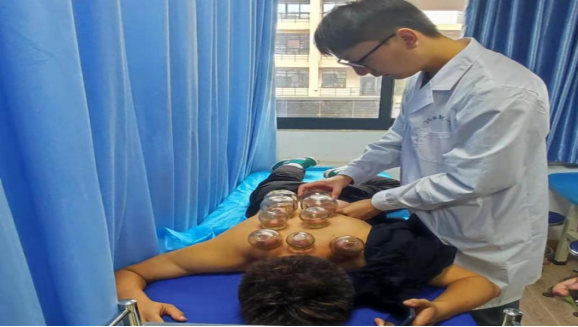 同学体验拔罐项目