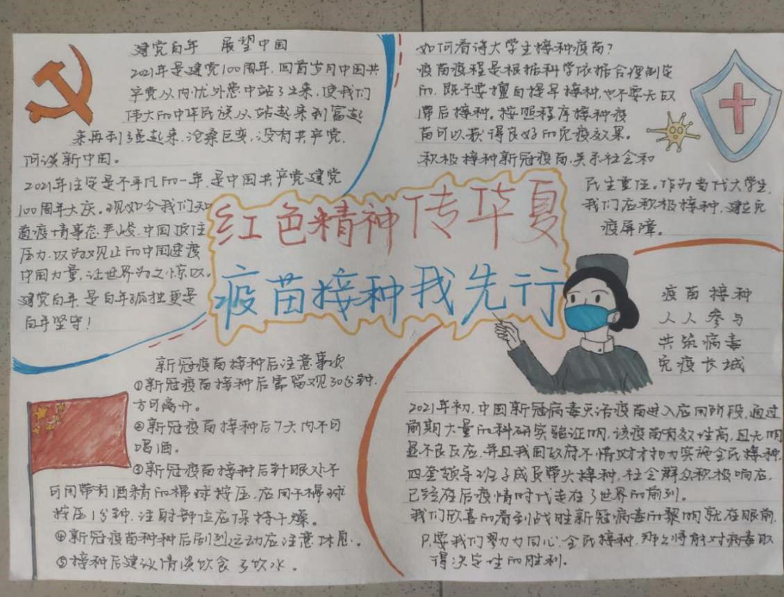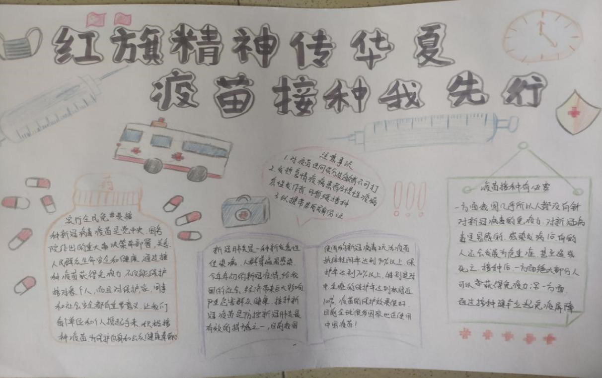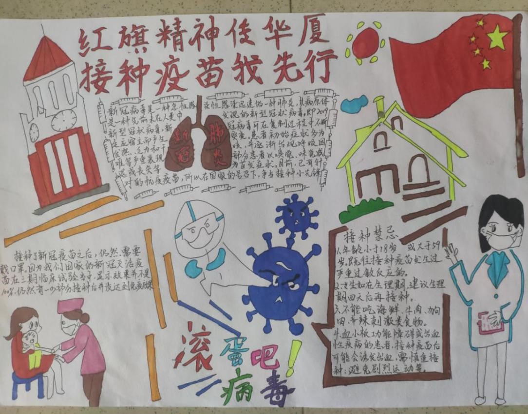 至此,“红旗精神传华厦 疫苗接种我先行”主题手抄报活动圆满结束。