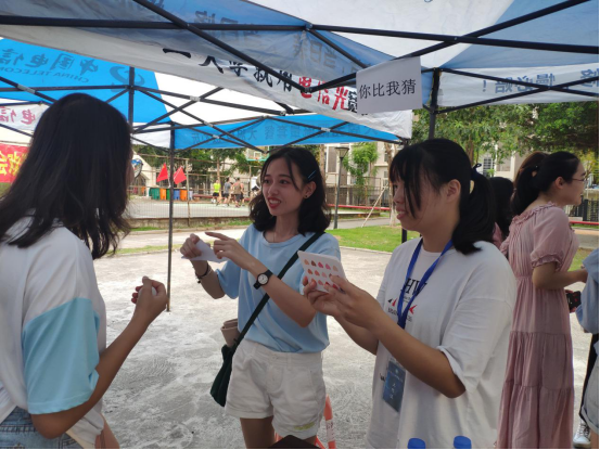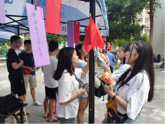 中秋游园会共设有六个游戏区——70周年抽签答题、猜灯谜、对诗、正话反说、乒乓球接力赛、你比我猜。通过新颖有趣的游戏体验来参与博饼环节,参加活动的同学络绎不绝。同学们的积极参与使得游戏氛围其乐融融。