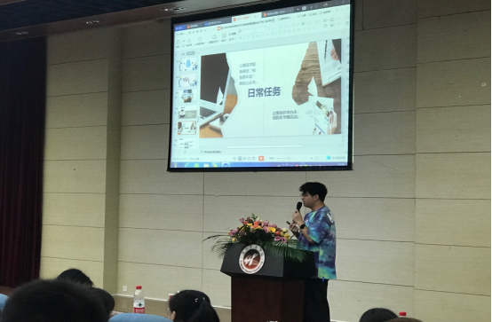 在交流会开始之前,首先由自律分会为新生们进行宿舍安全管理制度教育,目的是为了提高新生们的自我安全意识和远离“三防” ——防火、防盗、防诈骗。同时为新生们介绍自律分会的日常工作内容。