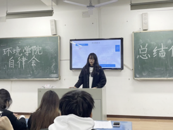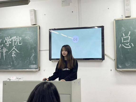 院自律会主席王嘉豪对这一学期的工作进行总结