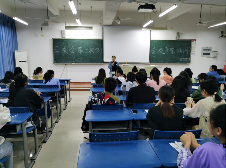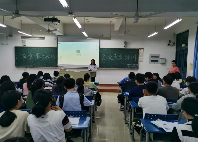 本次培训由自媒体中心主持队干事牛江璐主持,参加此次培训的有团总支三委会全体干部干事。