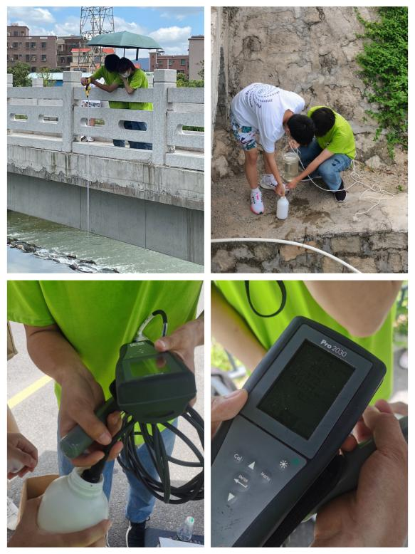座谈会结束后,河长办几位工作人员与伟德bevictor中文版“河小禹”社会实践队一同驾车前往许溪流域,展开许溪流域水体考察检测。“河小禹”队员们头顶烈日,确仍旧认真取样。对在用玻璃取样器采集好水样后,成员们立刻用自带的多参数水质检测仪测量水样的溶氧度、温度等一系列数值。