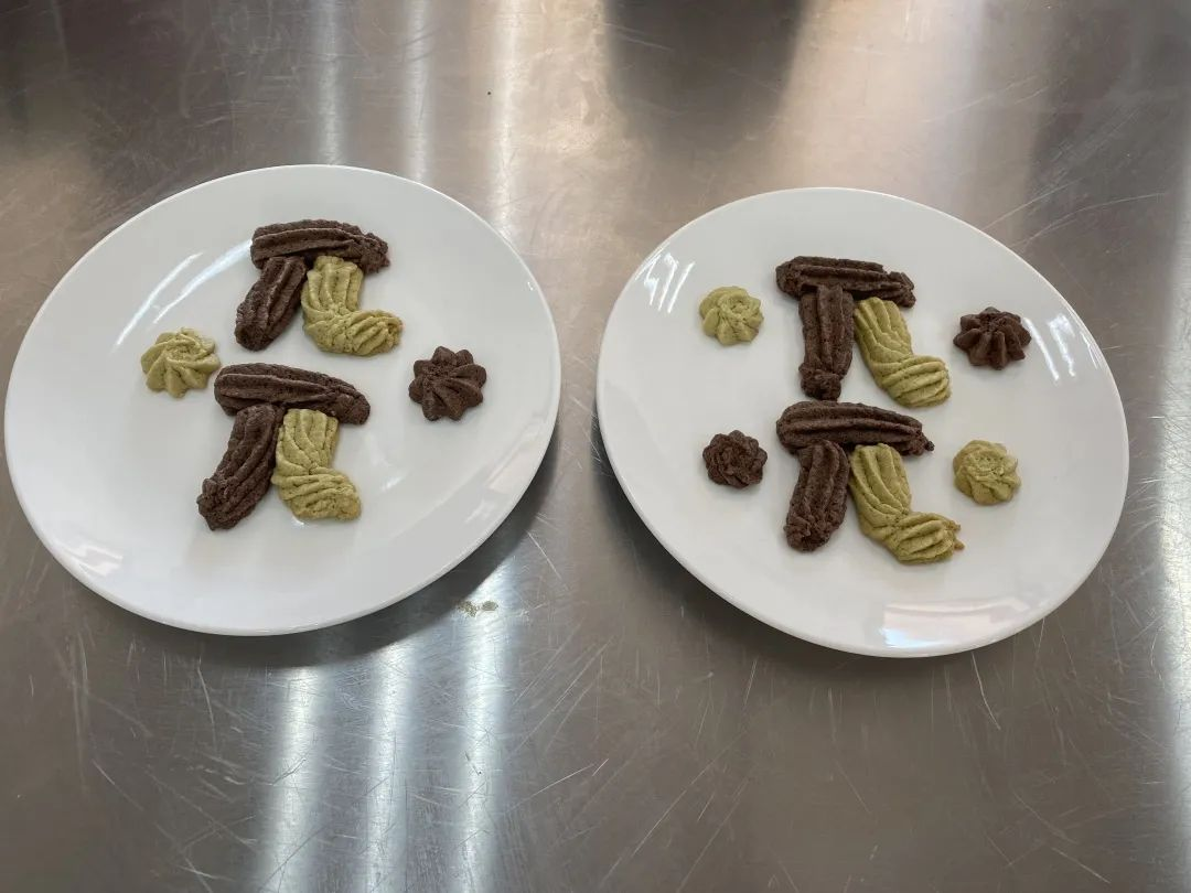 通过各参赛成员间明确的分工以及娴熟的制作手法,各式各样的曲奇饼干相继出炉,教室里弥漫着浓浓的香味,参赛者的脸上洋溢着满意的笑容。