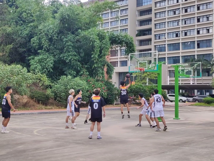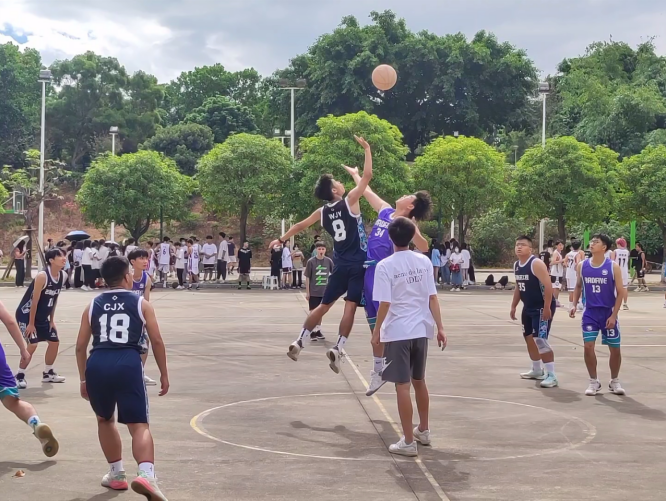 伴随着哨音响起,比赛开始了。队员们奔跑、护球、传接球、纵身一跃,将篮球抛出一道完美的弧线。同学们的目光也紧紧追随着篮球的运行轨迹。拼搏与激情共舞,尖叫与呐喊交织,团结与竞争同在,比赛与友谊共存,我们都是为了同一个目标奋斗,也正是因为有犀利的对手,才成就了这场精彩的比赛。