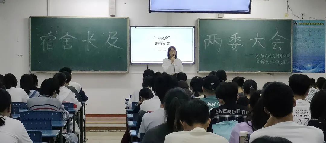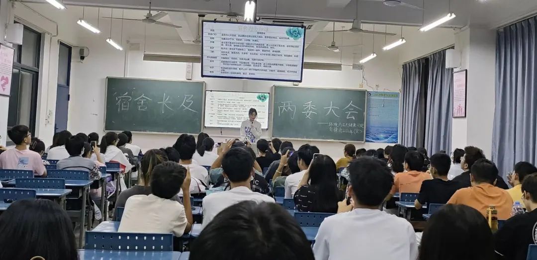 会议第一项流程是——自律会指导老师黄晓燕发言。黄晓燕老师从宿舍安全、环境卫生、宿舍氛围等方面为同学们进行系统讲解。此外,黄晓燕老师还强调了晚查寝工作的重要性、使用违规电器的严重性、宿舍长职能的关键性以及两委工作的不可替代性,其嘱咐舍长要时刻关心舍友的情绪状态,做好信息反馈的工作。此番叮嘱,让宿舍长及两委更深层次地了解到自己职位的关键性与未来工作的方向。