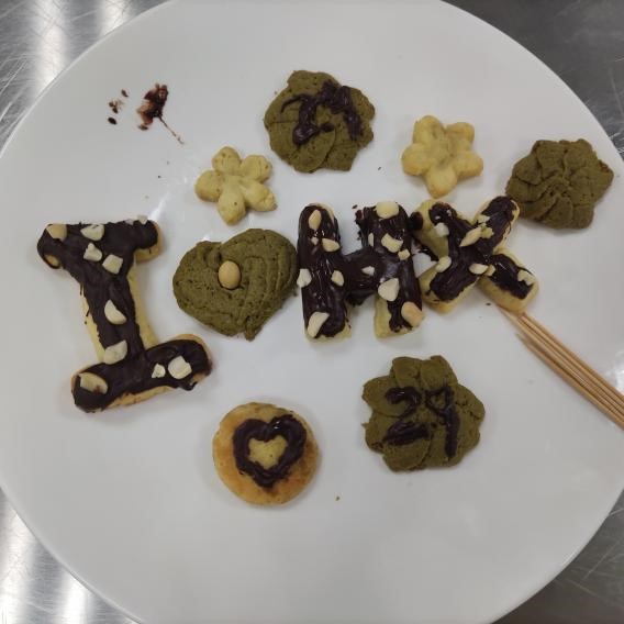 在整个活动过程中,同学们井然有序地按照步骤进行着。一千个制作者,就有一千种曲奇饼干。选手们纷纷拿出看家本领,有条不紊的制作着曲奇饼干。无论是打奶油,还是雕图案,每一个环节都彰显着选手们的细致。一块自制的曲奇饼干,不仅能带给我们意想不到的幸福和甜蜜,还带给我们别样的体验。