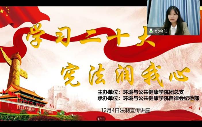 为深入学习宣传贯彻党的二十大精神,加强宪法学习,宣传宪法精神,维护宪法权威,推动全面贯彻实施宪法,弘扬社会主义法治精神,增强同学们对我国宪法的了解,bevictor伟德自律会纪检部于2022年12月4日19:30开展“学习二十大,宪法润我心”法制宣传线上讲座。
