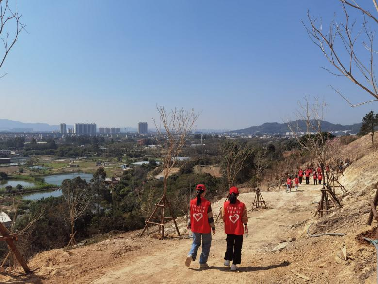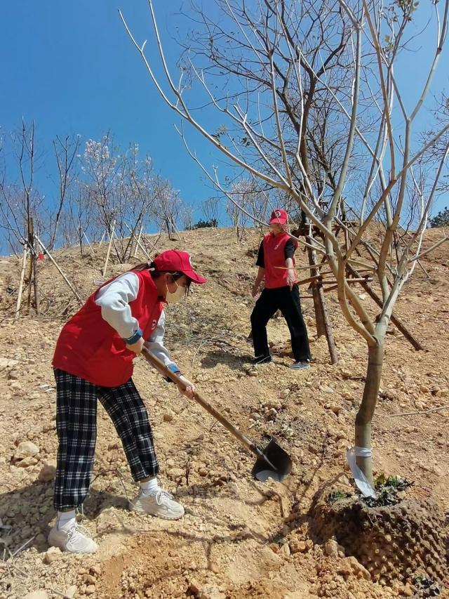 接着,青年团员们在东孚街道团工委洪书记的带领下上山进行植树活动,有的扶苗培土,有的跑递工具,分工有序,团结协作,现场一片忙碌景象。大家在志愿服务活动中绽放青春色彩,深刻领会乡村振兴发展活力。