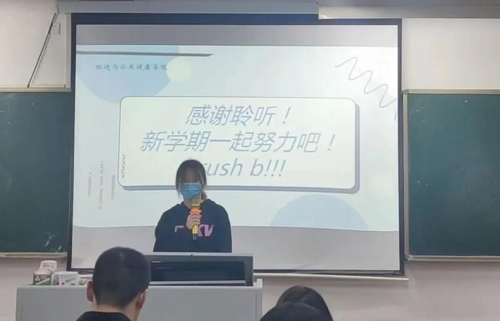 本次例会第一项议程是李帅杰老师上台发言。李老师首先表达了加入三委这个大家庭的喜悦,对干部干事们的工作成果给予了肯定,后提出对员工会以及三委的要求与期望,希冀同学们能在新学期铭记初心,勇担重任,更上一层楼。