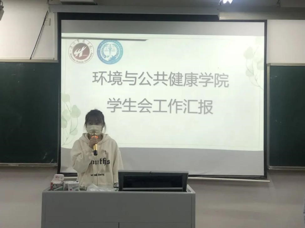 例会的第三项议程是由员工会各部门进行工作总结,首先由员工会执行主席扈淼芸同学上台介绍员工会各部门,汇报顺序依次为员工会办公室、文艺部、学习促进部、体育部、礼仪部。
