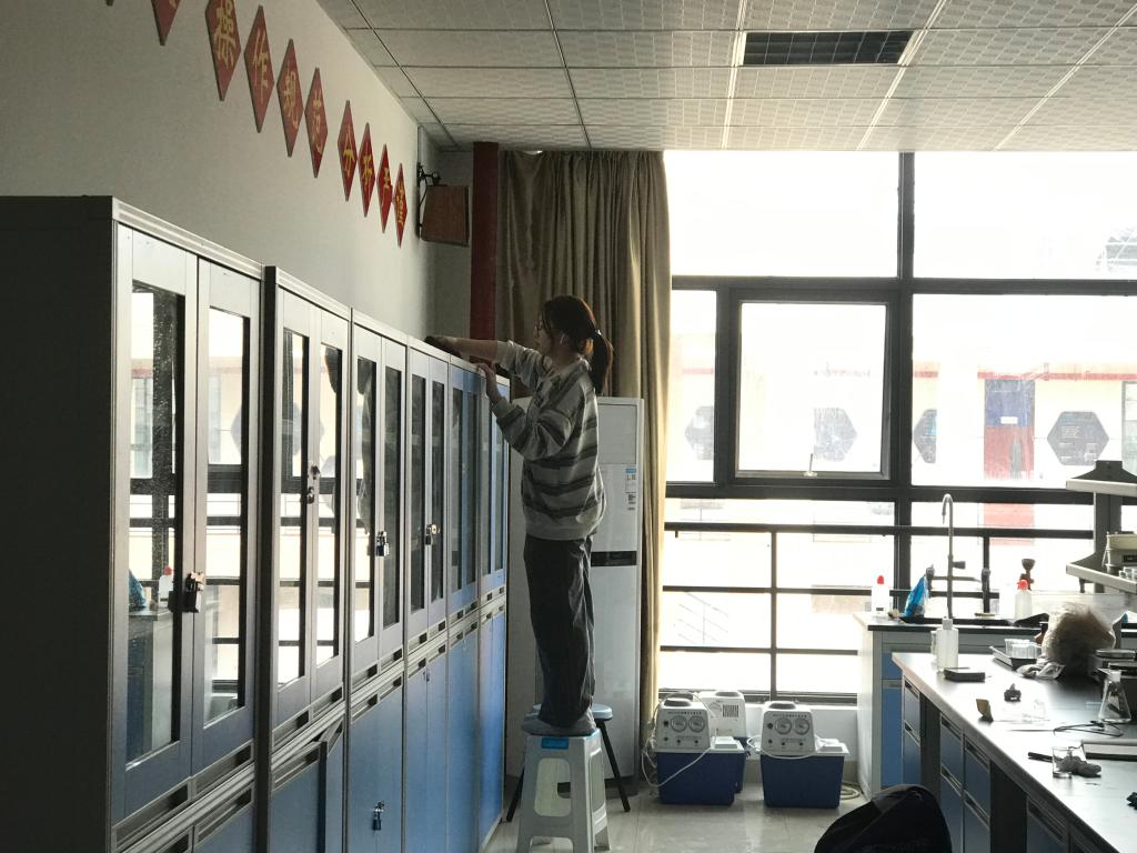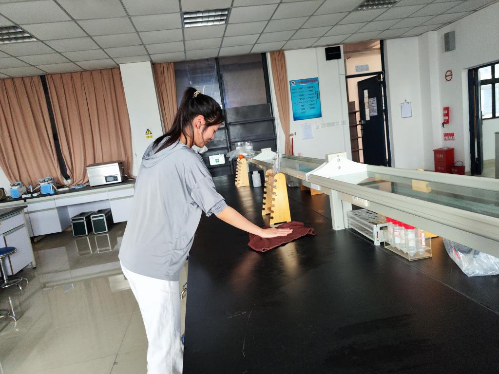 本次实验室清扫行动包括:玻璃仪器的清洗、整理实验操作台、试剂柜与水槽的擦拭焕新以及实验室地板大清扫等。