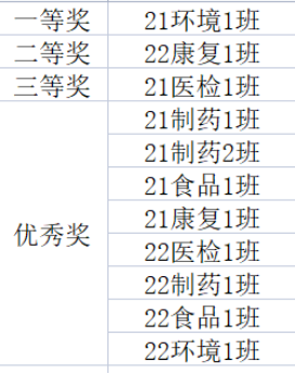 经过评委老师认真、严谨的打分,最终21级环境1班获得一等奖,22级康复1班获得二等奖,21级医检1班获得三等奖。