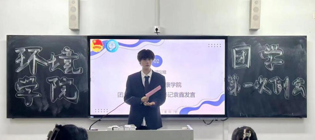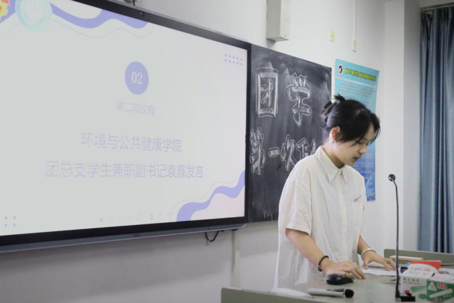 会议的第二环节,由团总支员工兼职副书记袁鑫同学发言,袁鑫同学强调新生干事们要用严谨负责态度对待工作,在工作中投入热情,鼓励新生干事活跃参加各项活动,熟悉活动流程和各部门人员,确保各部门工作可以井然有序的进行。