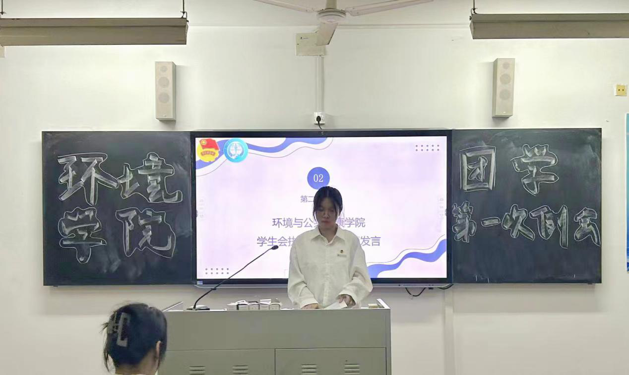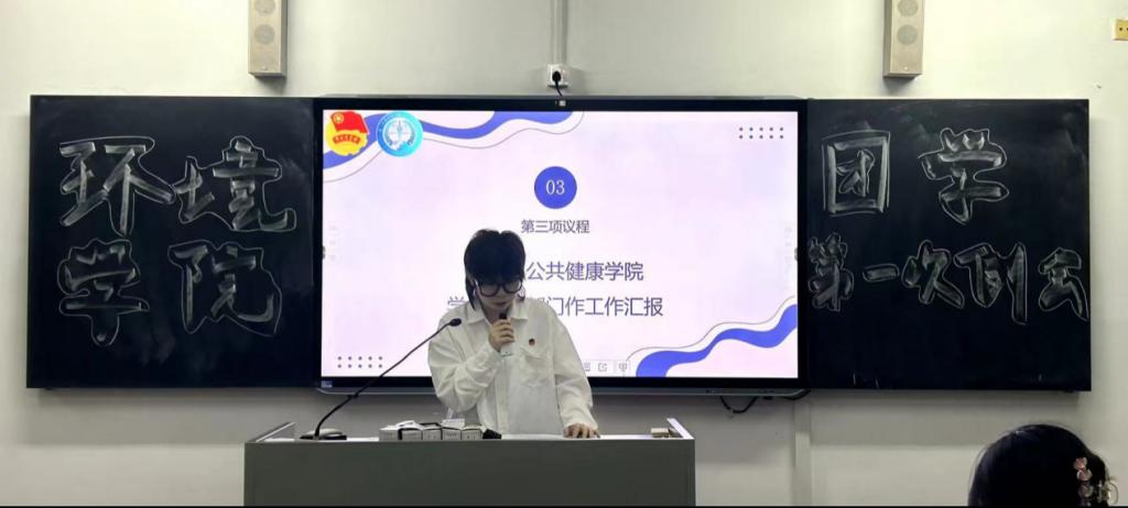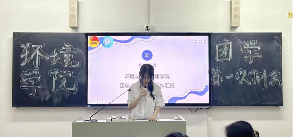 会议的第四环节,由团总支与员工会各部门进行工作汇报,各部门的部长、副部长依次上台发言,他们都表示了对新生干事的热烈欢迎,并在工作汇报中分享了以往工作开展过程中的经验,体现了团学各部门对工作的重视,做到了高标准、严要求。