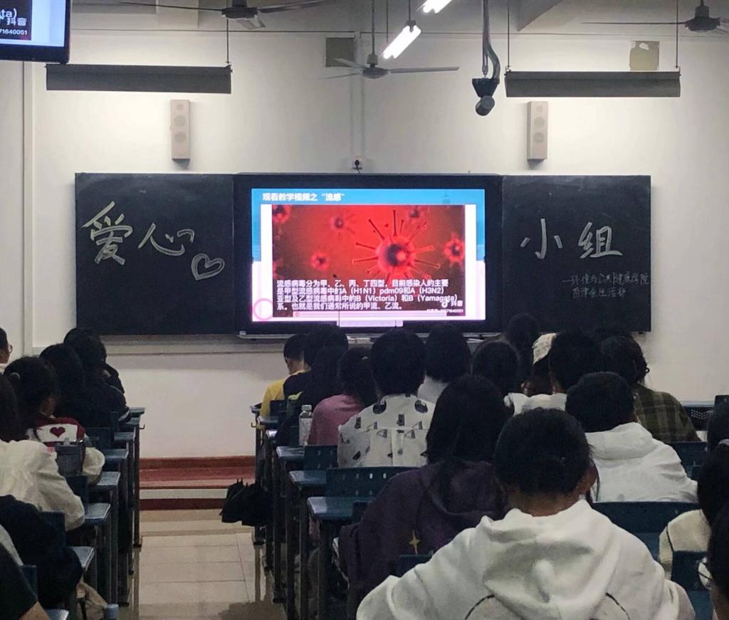 同学们观看流感科普视频