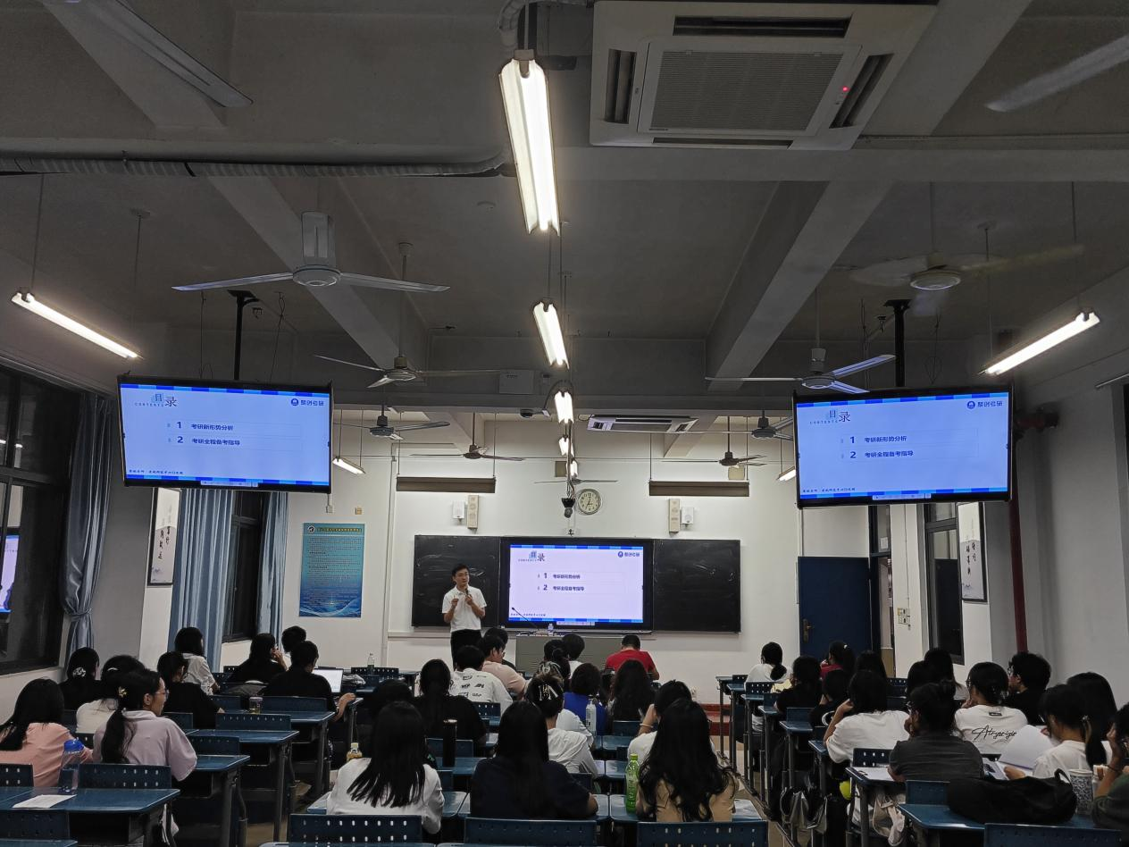 夏老师针对考研形势和难度、如何选择合适的院校、如何安排学习计划正确备考、跨专业考研等问题进行了深入解析,并用详实的数据,帮助同学们分析考研形势,使同学们有了更加精准的方向和目标。他指出,在备考过程中,拥有考研的决心是至关重要的,能够帮助同学们在困境中找到出路。