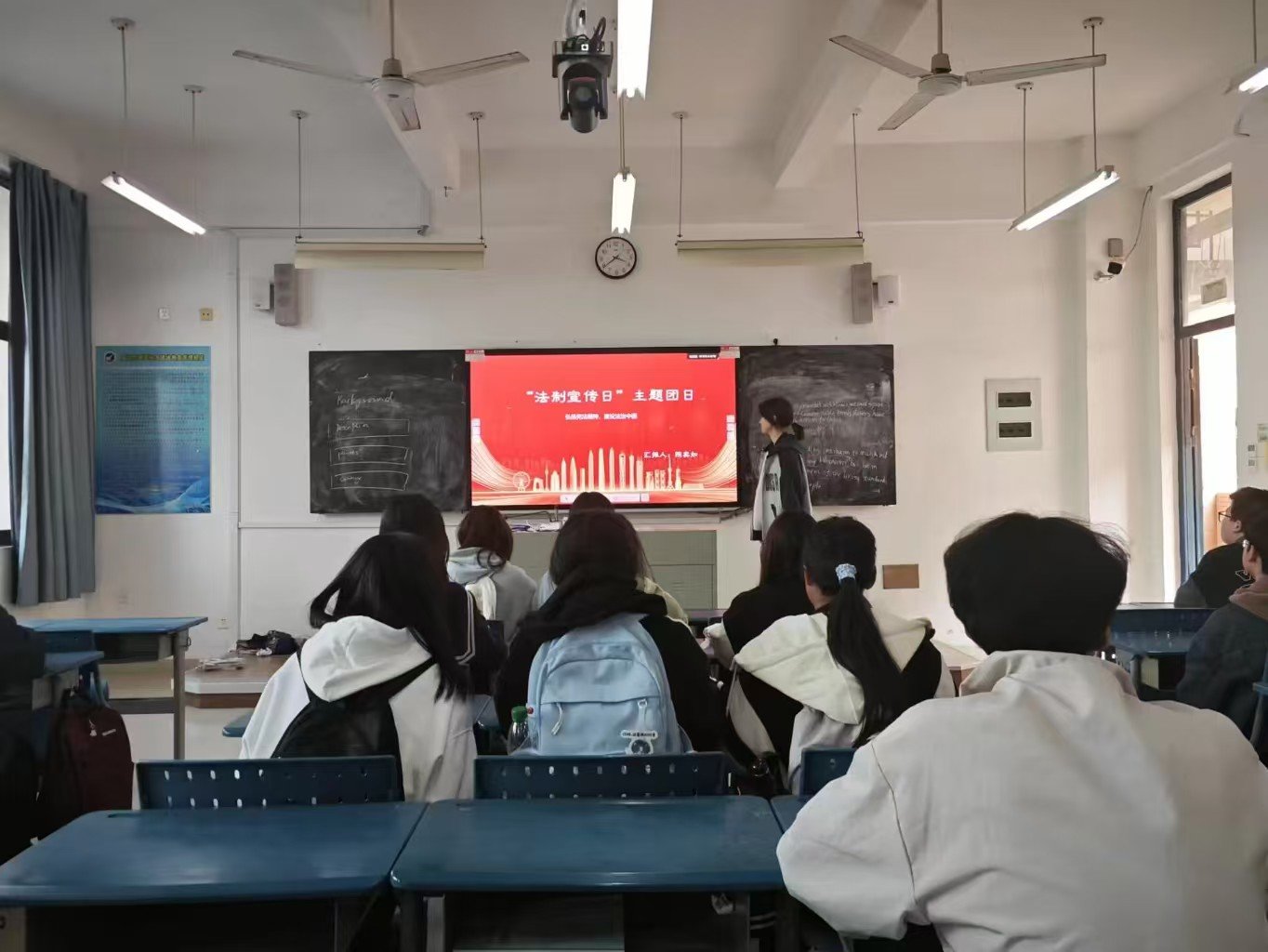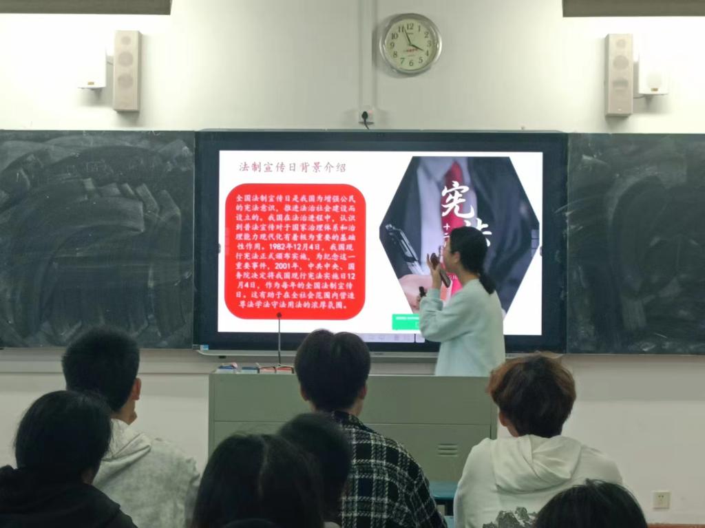 在国家法制宣传日的号角声中,各班团支书领学本次团日活动,通过多样化的形式让宪法知识深入人心。有的班级播放宪法宣传视频,结合案例进行深入浅出的讲解,使宪法知识更加贴近同学们的生活实际;有的班级通过团员上讲台,用亲身经历分享宪法故事,让宪法精神在同学们心中生根发芽;还有的班级组织讨论,围绕宪法的重要性及其在日常生活中的应用展开交流,同学们纷纷表示,要将宪法精神内化于心、外化于行,争做尊法、学法、守法、用法的模范。
