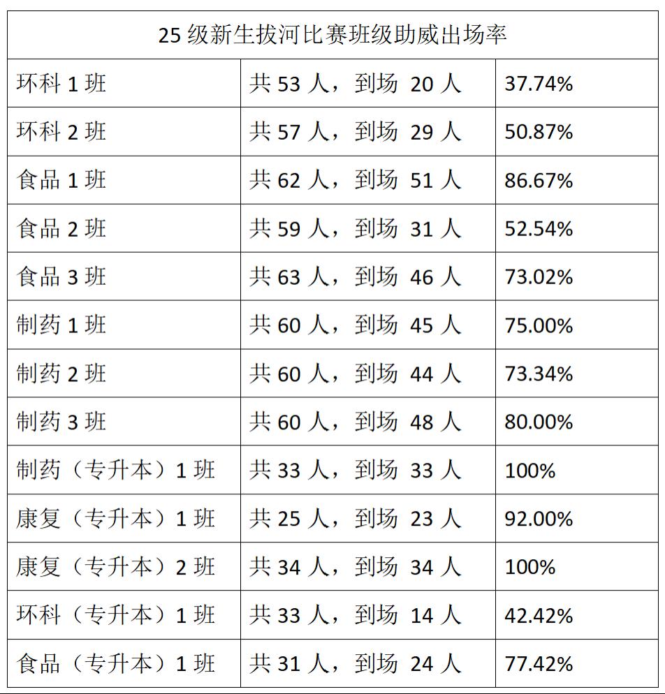 经过激烈角逐,最终评选出,本科组冠军队伍:25级环境科学与工程2班,本科组亚军队伍:25级制药工程3班,本科组季军队伍:25级食品质量与安全1班。专升本组冠军队伍:制药工程,专升本组亚军队伍:康复治疗学,专升本组季军队伍:食品质量与安全。