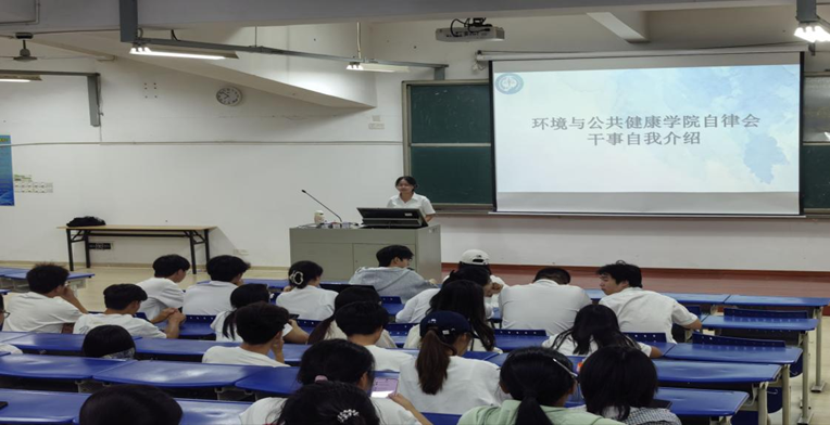 会议最后一项流程——新干事自我介绍。各部门新干事轮流上台发言进行自我介绍,他们充分表达了自己加入部门的初心,并分享了各自未来的规划和目标,期望于在自律会中拥有自己的一份收获。此举不仅为新干事提供了展示自我的平台,也通过兴趣爱好的交流迅速拉近了彼此距离,为后续的工作奠定坚实基础。