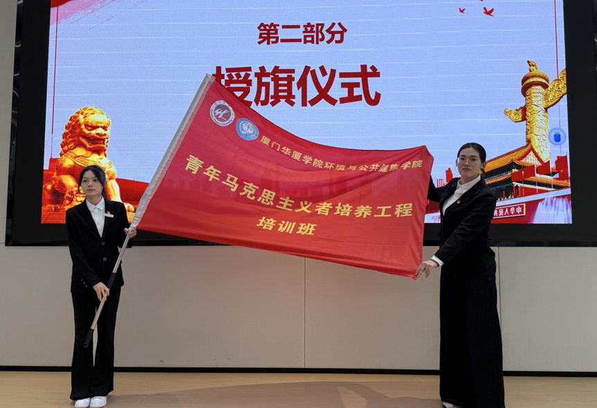 蒋依玲老师与洪煜桢同学分别作为师生代表,郑重交接印有“青年马克思主义者培养工程培训班”字样的红旗。这面旗帜不仅仅是荣誉的象征,更是一份沉甸甸的责任嘱托。它承载着成长导师对青年学员们在马克思主义理论学习、实践中坚定理想信念、提升思想觉悟的殷切期望,也激励着全体学员以更加饱满的热情投身到学习与实践当中,用青春力量书写属于青年马克思主义者的担当与作为。