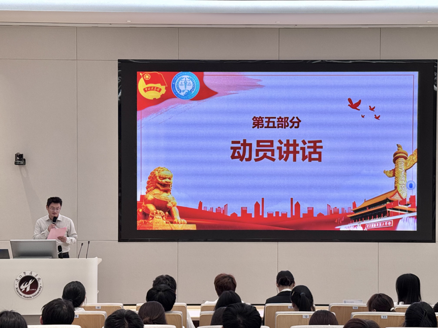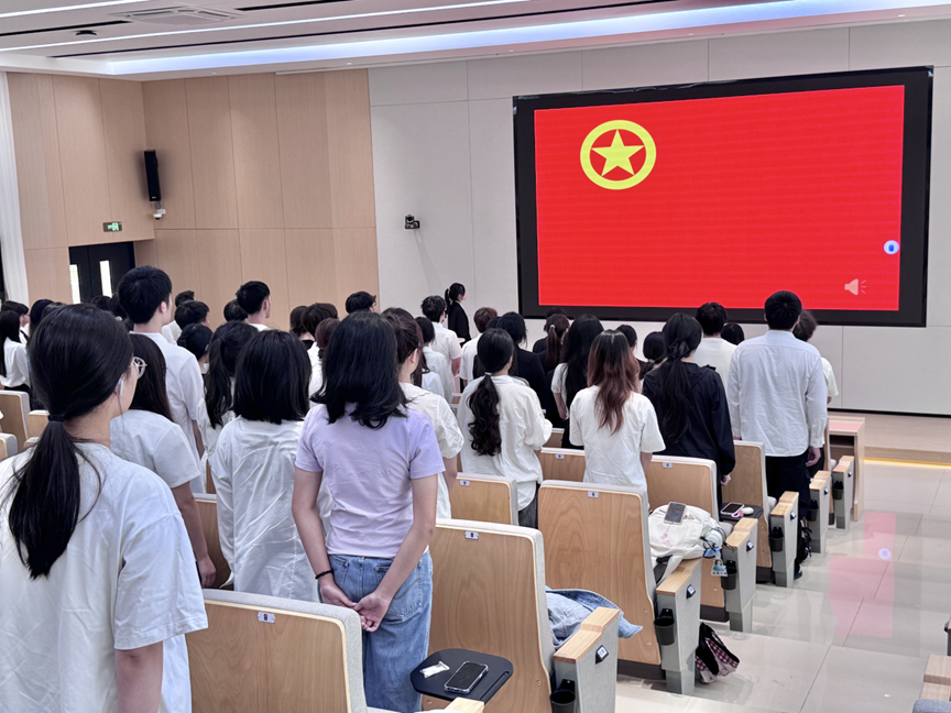 仪式开始,全体参会人员肃立行注目礼、奏唱《中华人民共和国国歌》,激昂的旋律回荡在会场,点燃同学们的归属感与使命感,为此次“青马班”开班仪式奠定了催人奋进的基调。